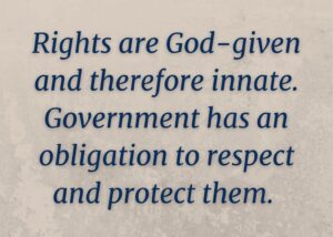 Third, we must exercise our rights of conscience, living before God in ways that, to the best of our ability to determine, please Him. This means living according to God’s law and upholding and doing what we know to be right, even when it is costly. At every opportunity, we need to remind our fellow Americans that conscience rights are God-given. They are not created by the government; instead, government is obligated to recognize them and respect them. With God’s blessing, actions that remind people and government of these realities can have a far-reaching and profound effect.
