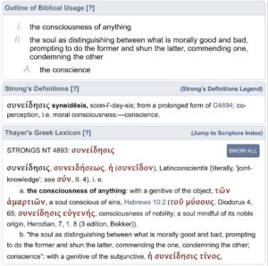 The New Testament tells us some very important information about the human conscience. In the King James Version, the Greek word translated conscience appears “32 times in 30 verses.” You can see those on this page.