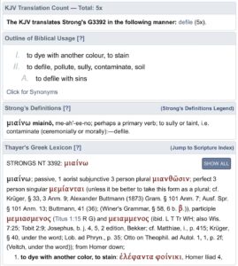 Here is a portion of the information available at blueletterbible.org about the word translated “defiled” or “corrupted” in Titus 1:15, where it is used twice.